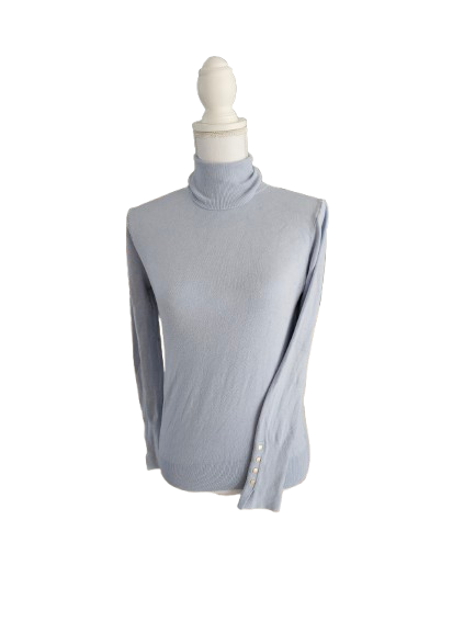 Col roulé bleu clair, détails sur les manches.