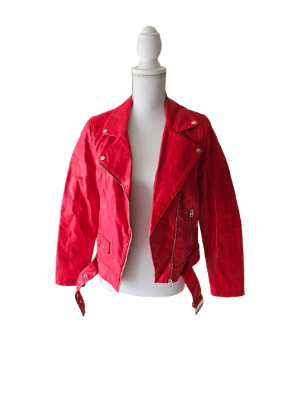 Perfecto rouge simili cuir avec ceinture à la taille.