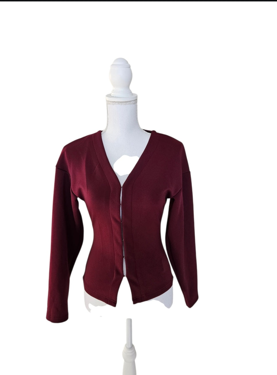 Top manche longue bordeaux avec fermeture agrafes à l'avant.